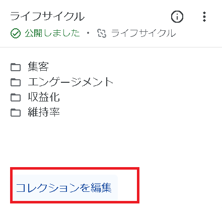 「ライフサイクル」コレクションの「コレクションを編集」を選択します。
